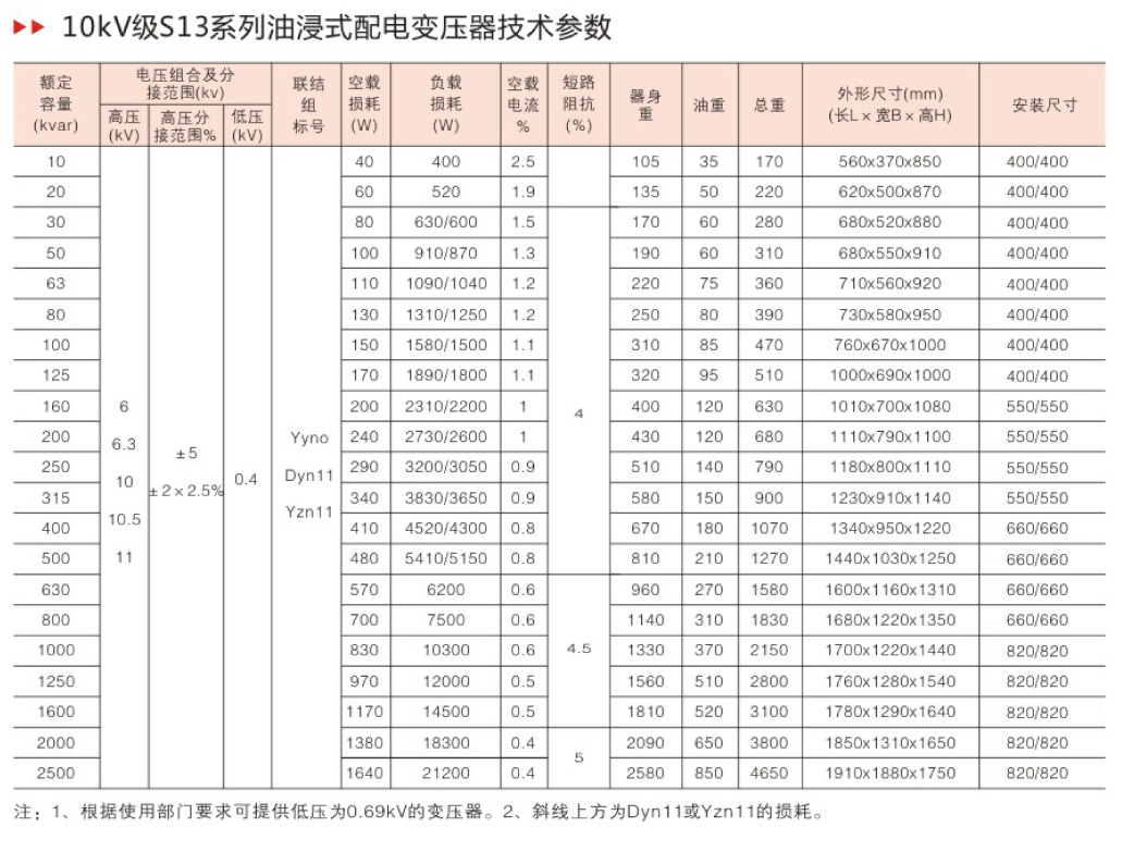 S13系列产品在S11系列的基础上,空载损耗、空载电流比、温升、噪音等进一步降低,性能进一步优化。
