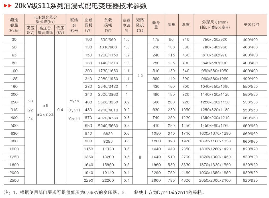 S11系列产品在S9系列的基础上,空载损耗平均降低了30%;空载电流比S9下降70-85%;平均温升降低10K,产品使用寿命增加一倍多,即使在超负载20%的条件下仍可长期运行;产品运行噪音平均降低2-4分贝。